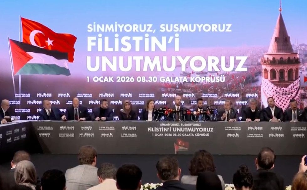 “Bu mesele (Gazze) bir siyaset meselesi değil. Bu mesele insanlık vicdanını ilgilendiriyor. Bunun için bir insanlık ittifakına her zamankinden daha çok ihtiyacımız var. Hızlı bir şekilde iki devletli bir çözümün hayata geçirilmesi ile ilgili de uluslararası toplumun hareket etmesi gerektiğini düşünüyoruz. 1 Ocak sabahı dünyaya yeniden güçlü bir ses vermek için Galata Köprüsü’nde buluşmak üzere.”